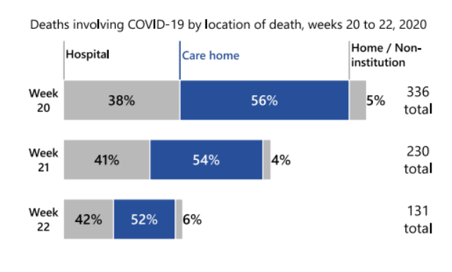 Care homes again are where the majority of deaths are occurring at 52% of all Covid related deaths.