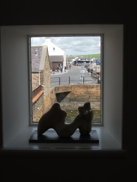 The image at the beginning of this piece, is of one of Barbara Hepworth’s sculpture’s, and of Stromness through the window behind it. I think it catches Stromness – with people, buildings, the street, and the sea. Pere Mare. I think the sculpture is called ‘Large form, small form’, but, to me, it’s a person, like the people you can see through the window.