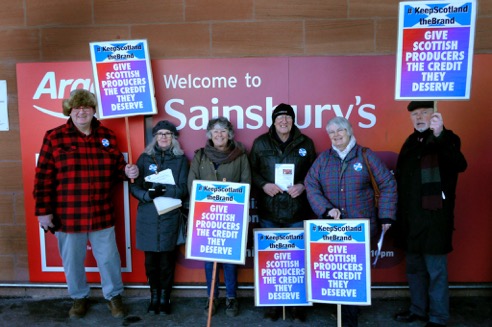 In the Borders town of Kelso, campaigners for Keep Scotland the Brand gathered outside their local Sainsbury’s store last Saturday with placards, leaflets, badges and a petition in support of Scottish farmers and Scottish produce to talk to shoppers about their campaign. This non-party political, grass roots campaign, initiated by consumers, is growing all over rural Scotland, prompted by the steady disappearance of the Saltire on packs of food grown in Scotland and its replacement by large Union flag packaging.