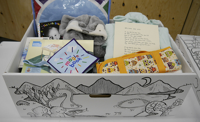 “Scotland has a Government funded universal scheme where all babies born receive a baby box. Midwives sign a form to confirm a woman’s pregnancy at around 24 weeks. If the woman wishes to receive the box, she sends in the form and the box is delivered from a central Government distribution point free of charge by 34 weeks of pregnancy. The boxes and their contents are designed by the Scottish Government and do not contain any marketing or corporate branding. The boxes contain some written public health information relating to perinatal mental health, safe sleep and infant feeding.