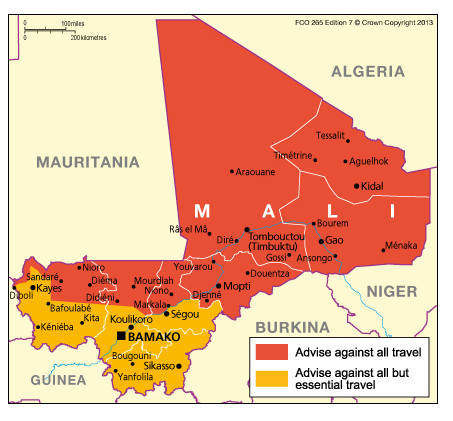 There has been a state of emergency in the West African country of Mali since November 2015. The situation in Mali continues to deteriorate. The UK’s Foreign and Commonwealth Office has advised against all travel in the northern provinces and only essential travel in other parts.
