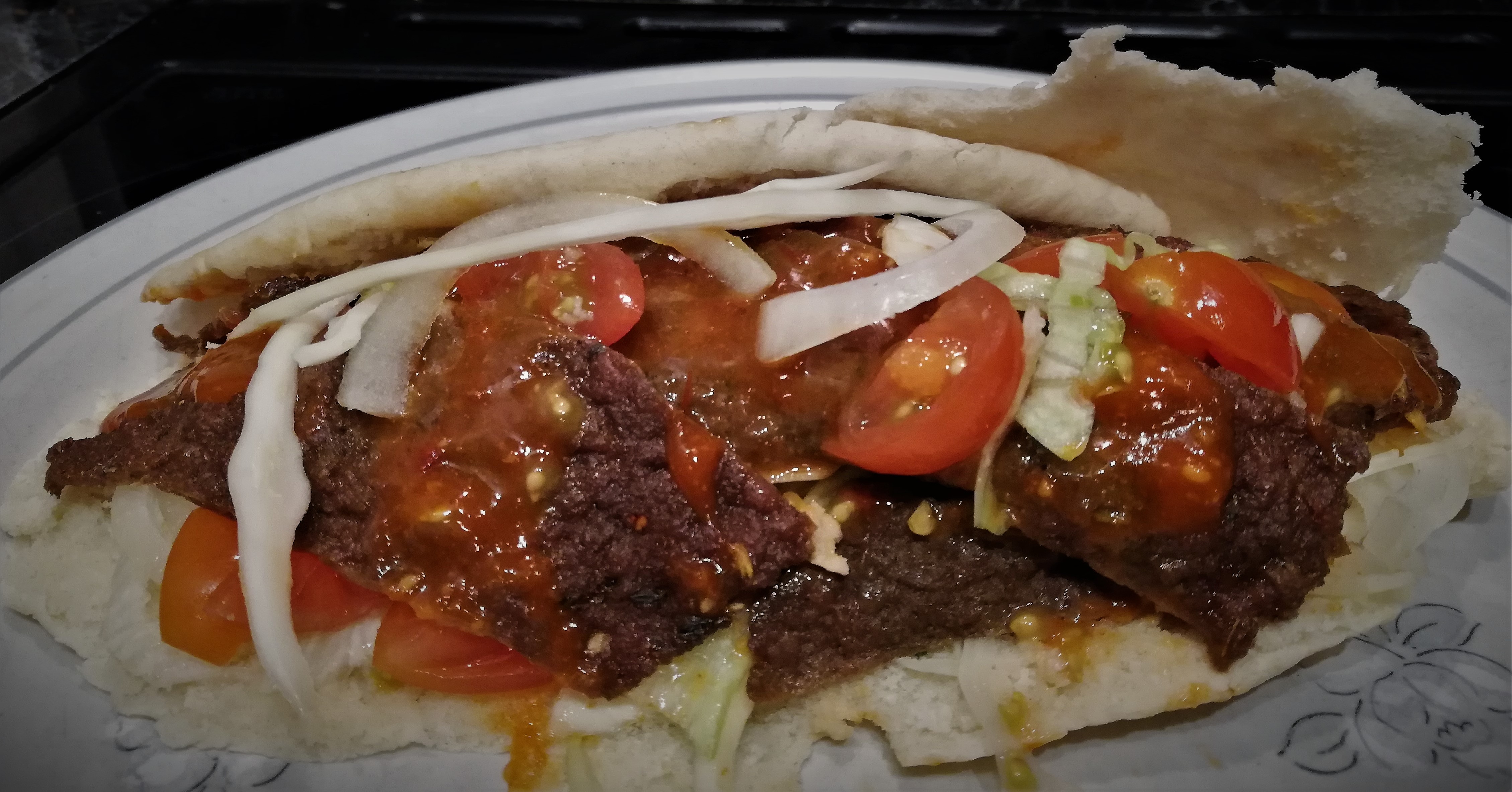 - Carefully slice through the middle of your warmed Pita Bread and create your Doner masterpiece.
