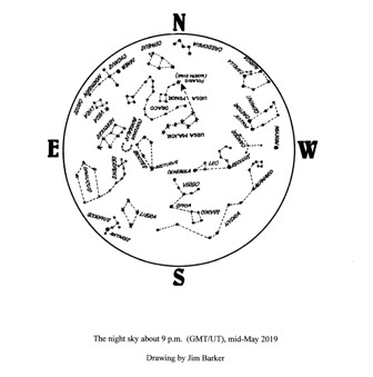 The eta Aquarid meteor shower of debris from Halley’s Comet peaks on the night of 5th/6th May, and will be best seen after 3 a.m., but not spoiled by moonlight.