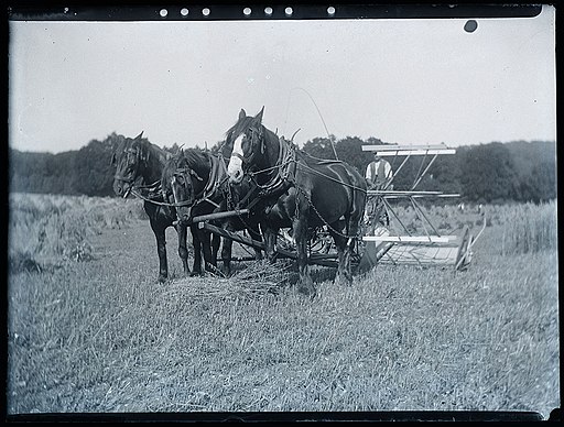 By the 1890s and early 1900s the horse drawn binder began to take over, with this new type of machine cutting the crop and automatically binding it into sheaves.