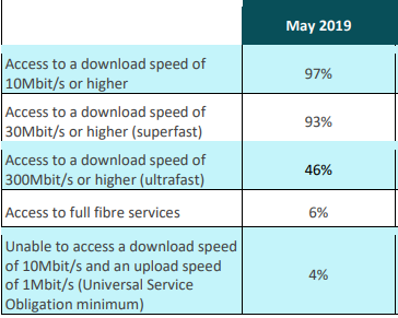 Fixed Broadband coverage for May 2019 in the UK