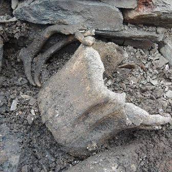 “The vessel had been placed just outside the broch wall, very close to the entrance, when the broch was put out of use around the Mid-2nd Century AD. As well as the whalebone vessel and jawbone, two red deer antlers had been propped against the vessel and a very large saddle quern, a grinding stone, had been positioned against the vessel to pin it firmly in place against the broch wall. All this treatment appears to have been part of the measures employed to perform an act of closure of the broch.”