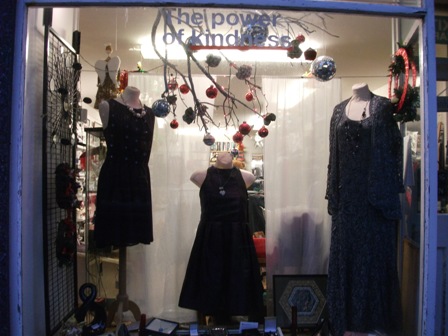 From Julia’s, I headed up the street, and started Christmas Spotting at the Red Cross shop, with its message of kindness…