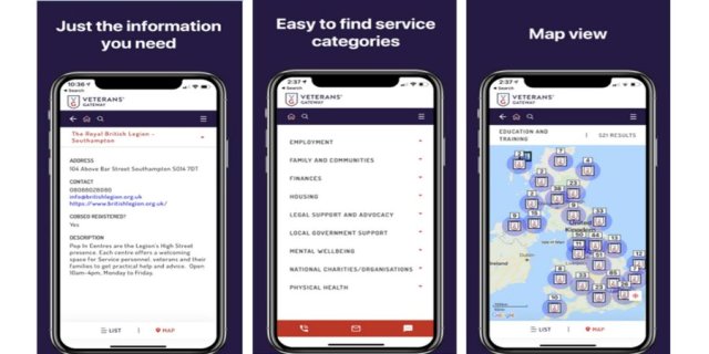 Veterans’ Gateway has an app which helps veterans find support organisations in their area using their smartphone or tablet.
