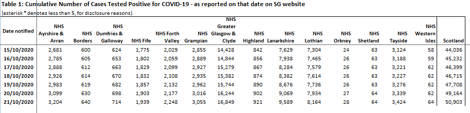 You can find the updated figures here: COVID-19+daily+data+-+by+NHS+Board+-+21+October+2020