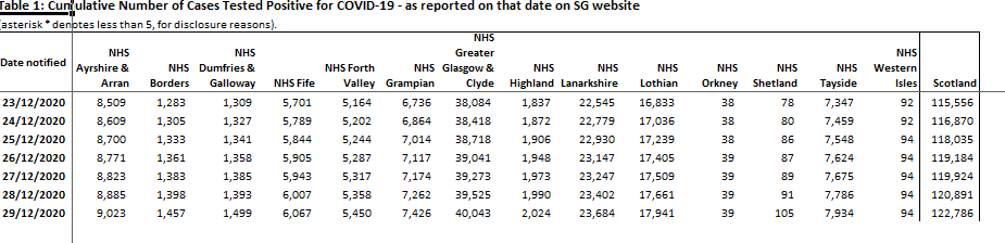 Click on this link for additional data about the number of positive cases in Care Homes in Scotland and staff absences.