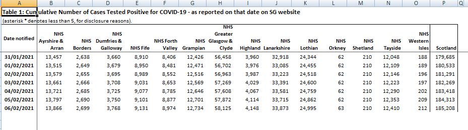 The stats for Scotland as at 6th of February 2021 are as follows: