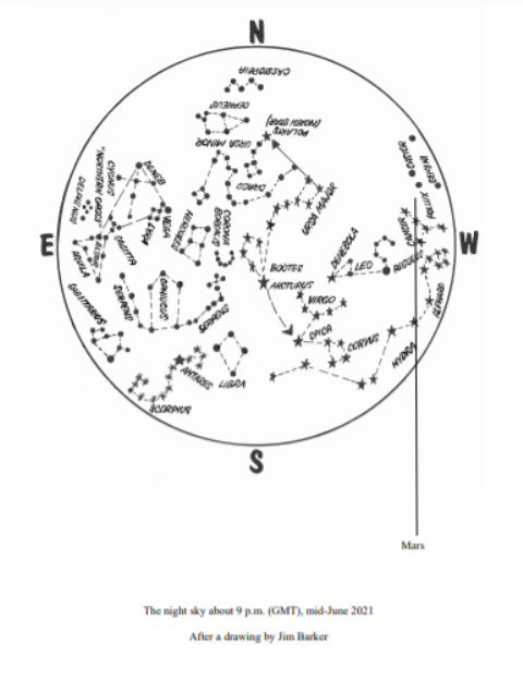 Neptune rises between Aquarius and Pisces around 1.30 a.m., passed by the Moon on June 3rd and 30th. By the end of June, Jupiter, Saturn and Neptune are all appearing to move retrograde (westward) as the Earth overtakes them in its orbit, before our closest to them later in the year.