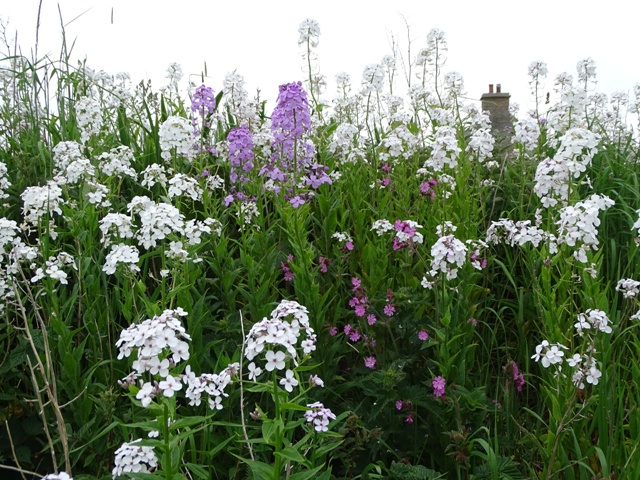 Carrying on along the path by Harray Loch, and admiring the banks of Stocks in bloom….
