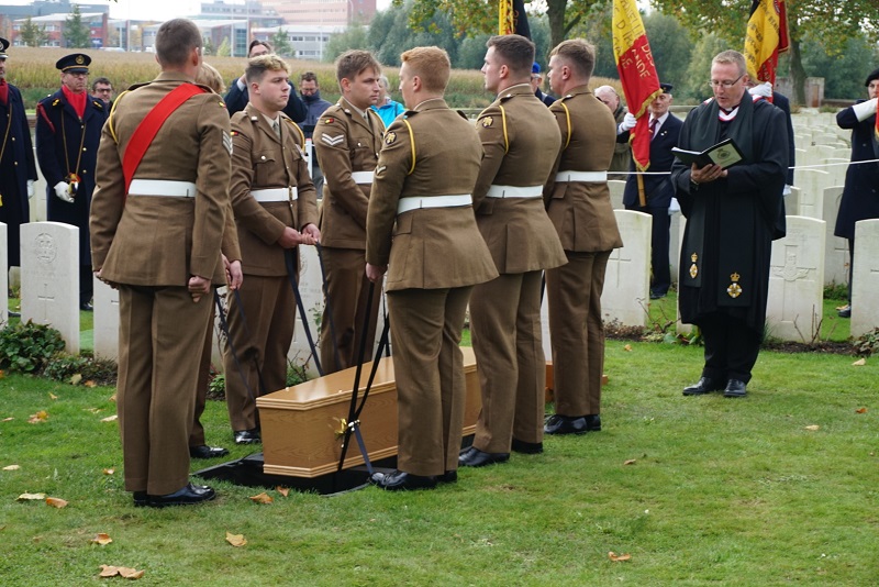 “The fact that members of Robert Cook’s family are here in Ypres and able to finally lay him to rest in a marked grave with the dignity and honour that he deserves is all due to the excellent detective work of Rosie Barron of the MOD’s Joint Casualty and Compassionate Centre who we cannot thank enough.”