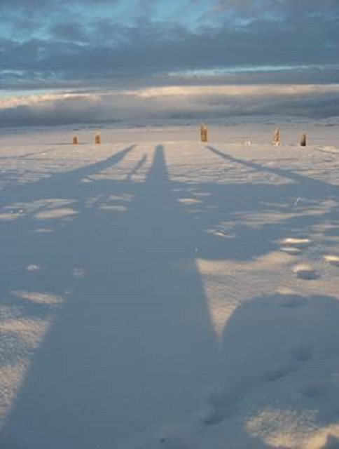 Most of these shadows are of the Brodgar stones – one is of a human being. Stone circles – people – through time and across the world.