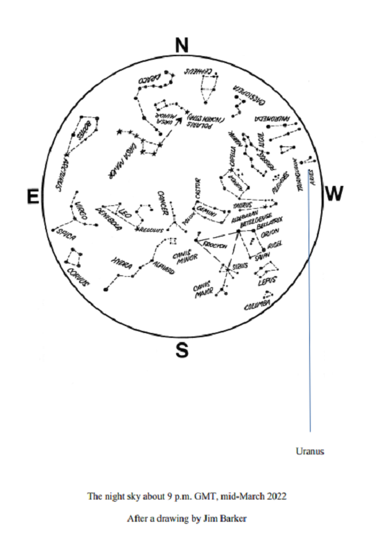 Uranus in Aries sets around 10.30 p.m., near the Moon on the 7th, and occulted by it in south-east Australia.