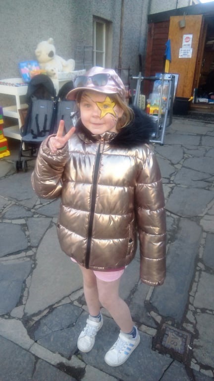 As well as the usual goods for sale there was a face painter doing a brisk trade outside. (pics by kind permission of the parents)