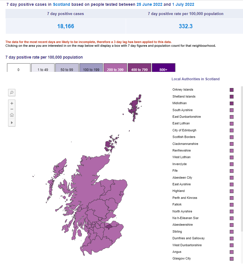 The stats for Scotland published on the PHS website on the 6th of July 2022 are as follows: