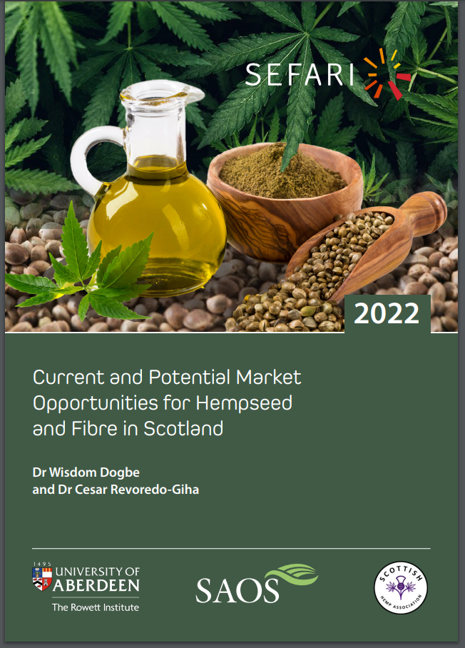 These are the results of a new report Potential Market Opportunities for Hempseed and Fibre in Scotland . The report is a collaboration involving the University of Aberdeen’s Rowett Institute and Scotland’s Rural College (SRUC), partnering with the Scottish Agricultural Organisation Society (SAOS) and the Scottish Hemp Association (SHA).
