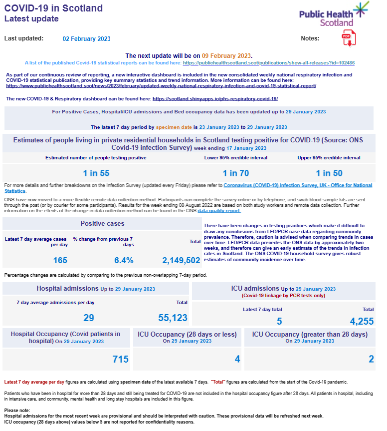 The weekly update by Public Health Scotland on Covid and Respiratory Cases on 2nd February 2023 is as follows: