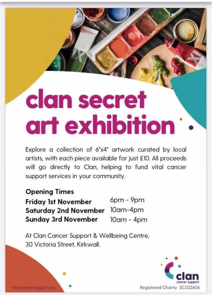 Clan cancer support charity in Orkney has been overwhelmed by the response from artists to their Secret Art Exhibition. There are 312 original pieces of artwork from home and away.